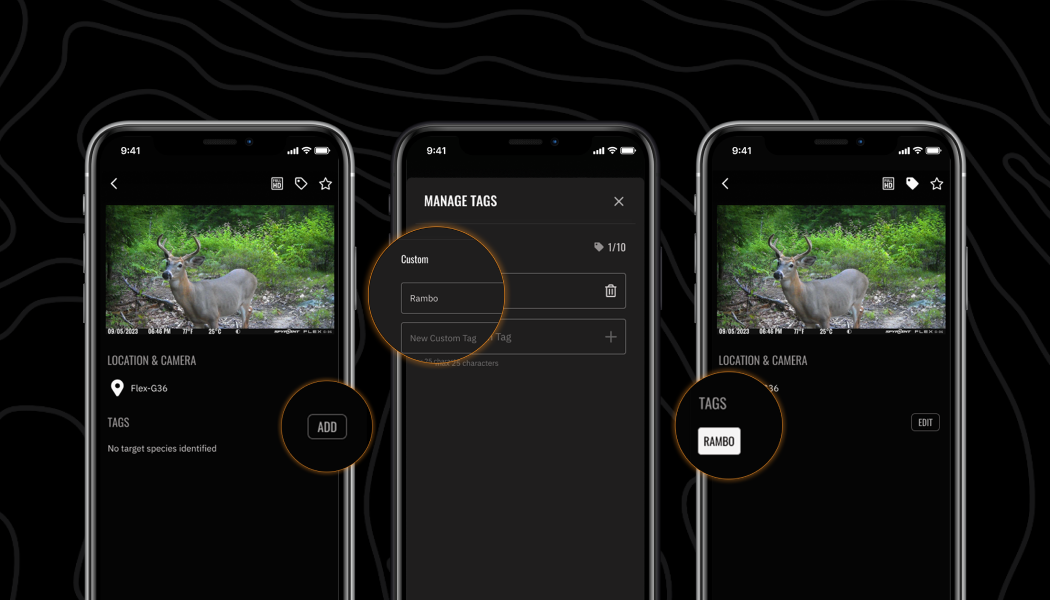 Do you need to keep track of a particular buck or mark images from a specific area? Now, if you’re a member of Insider’s Club, you can with up to 10 customizable tags tailored to your needs. Use them for anything you want to mark and easily find later in your gallery—target animals, trail intersections, attractants, you name it.