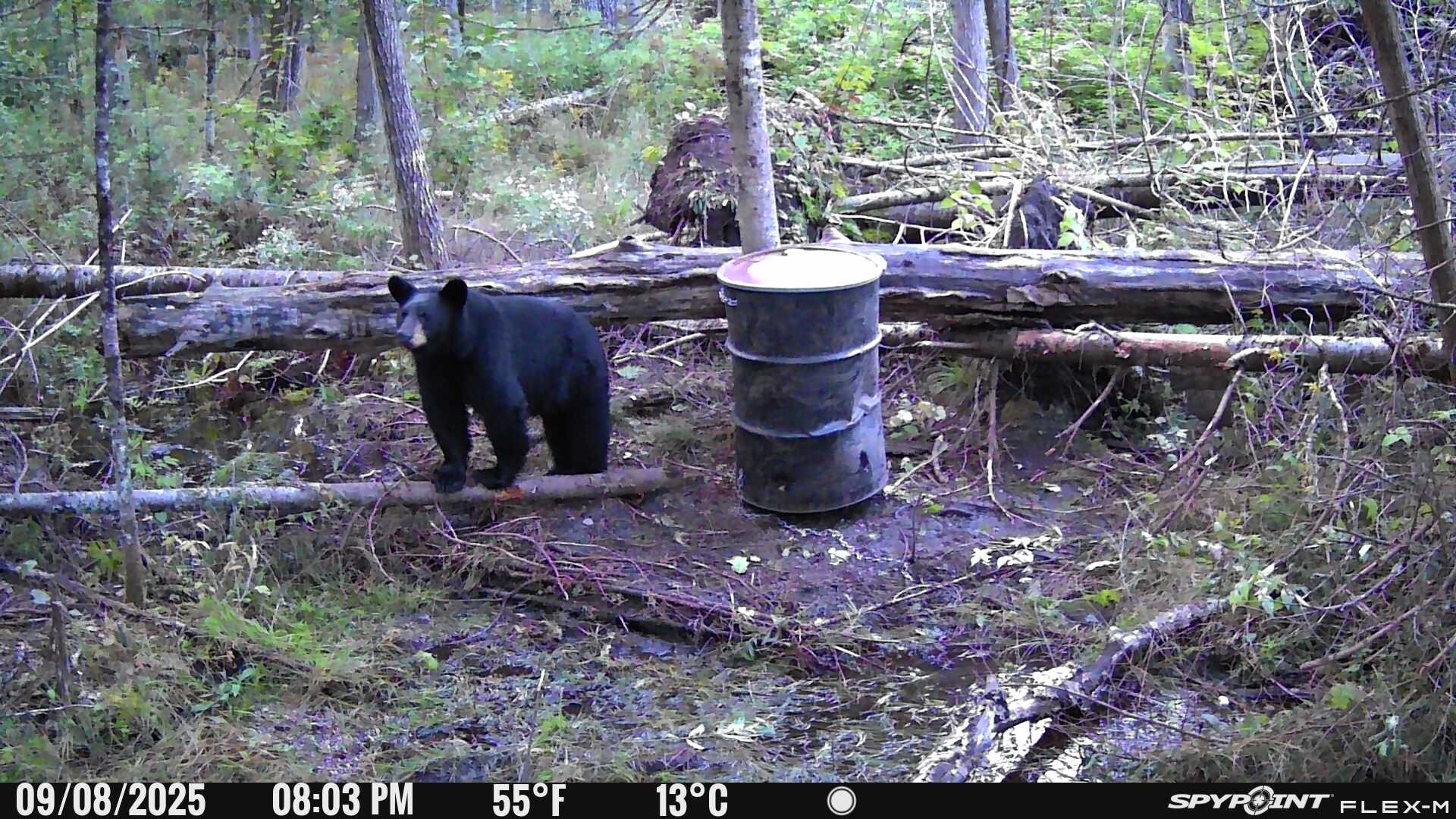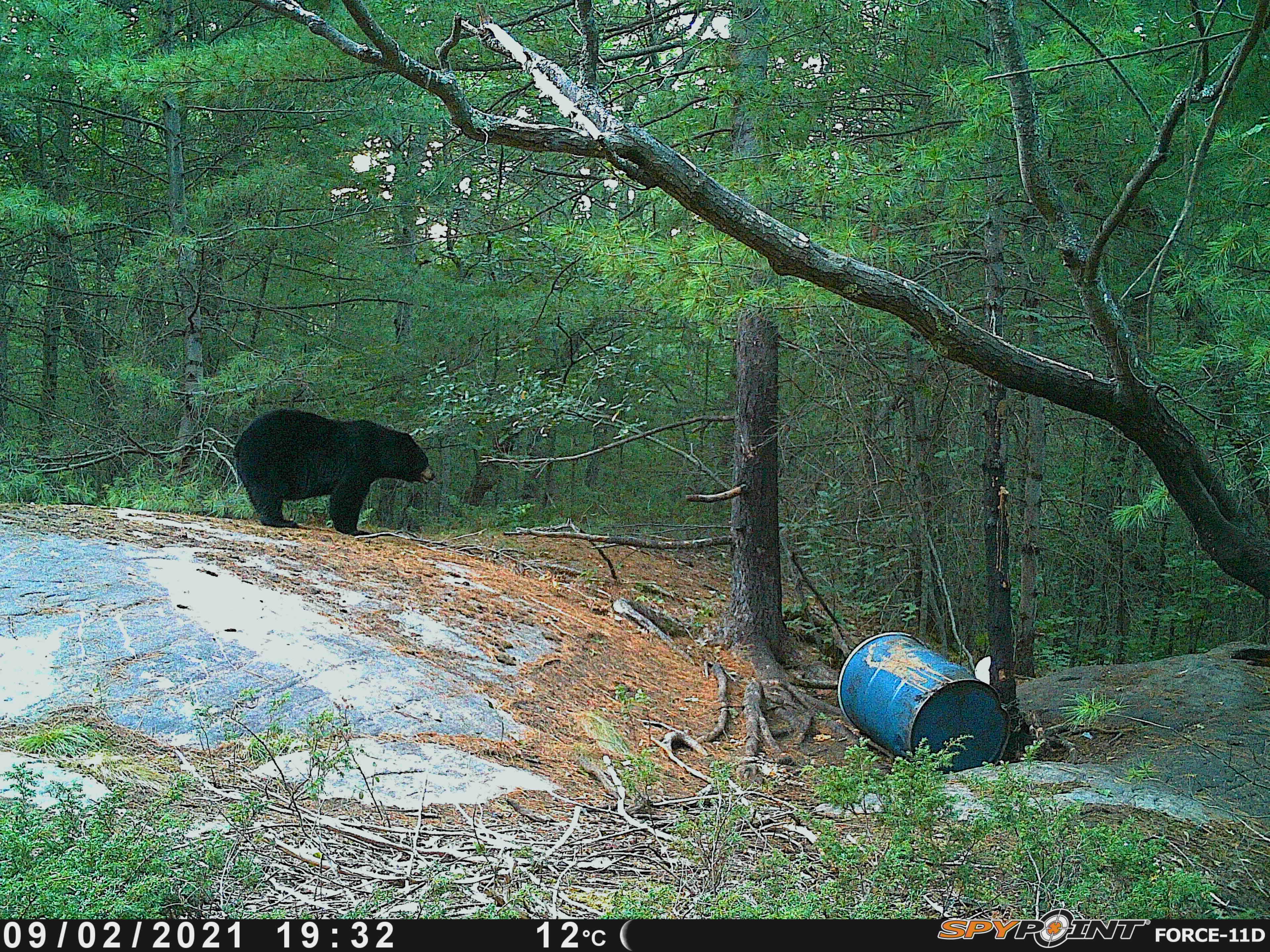 One of the easiest ways to judge bear size at a bait site is to use the bait barrel as a consistent reference point. Since most barrels are a standard height, they create a built-in measuring tool for every bear that visits.