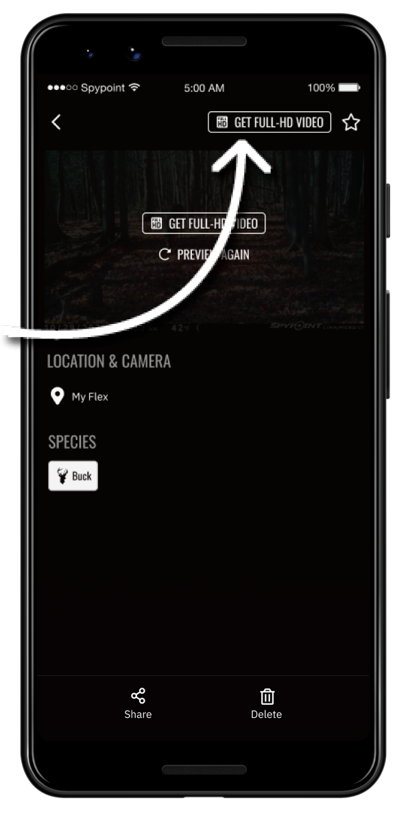 Wenn Sie das vollständige Video ansehen möchten, tippen Sie oben rechts auf die Schaltfläche „GET FULL‑HD VIDEO“. Dadurch wird bei der nächsten Übertragung die animierte Vorschau durch das Video in voller Länge ersetzt.
