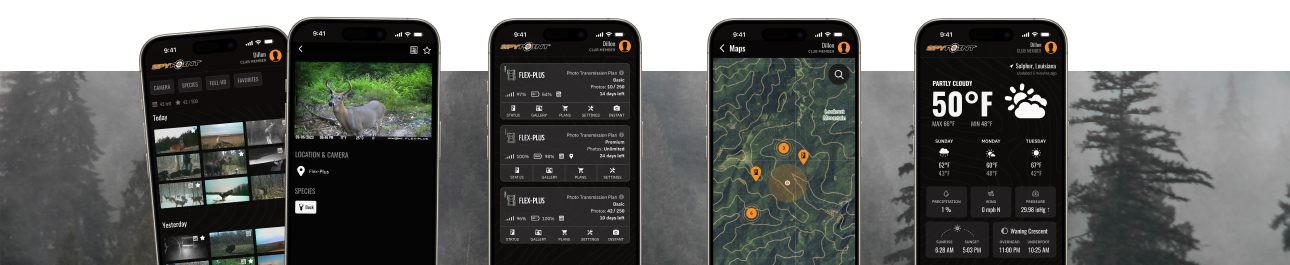 Gratuite à télécharger et facile à utiliser, l'application SPYPOINT un outil de gestion des caméras pour téléphone portable et de localisation qui vous fera gagner du temps, enrichira vos connaissances et augmentera vos chances de réussite. Utilisez l'application pour afficher et trier les photos et vidéos envoyées par vos caméras mobiles, gérer les paramètres des caméras et les forfaits de transmission, marquer des emplacements clés comme les postes d’affût, consulter la météo et bien plus encore !