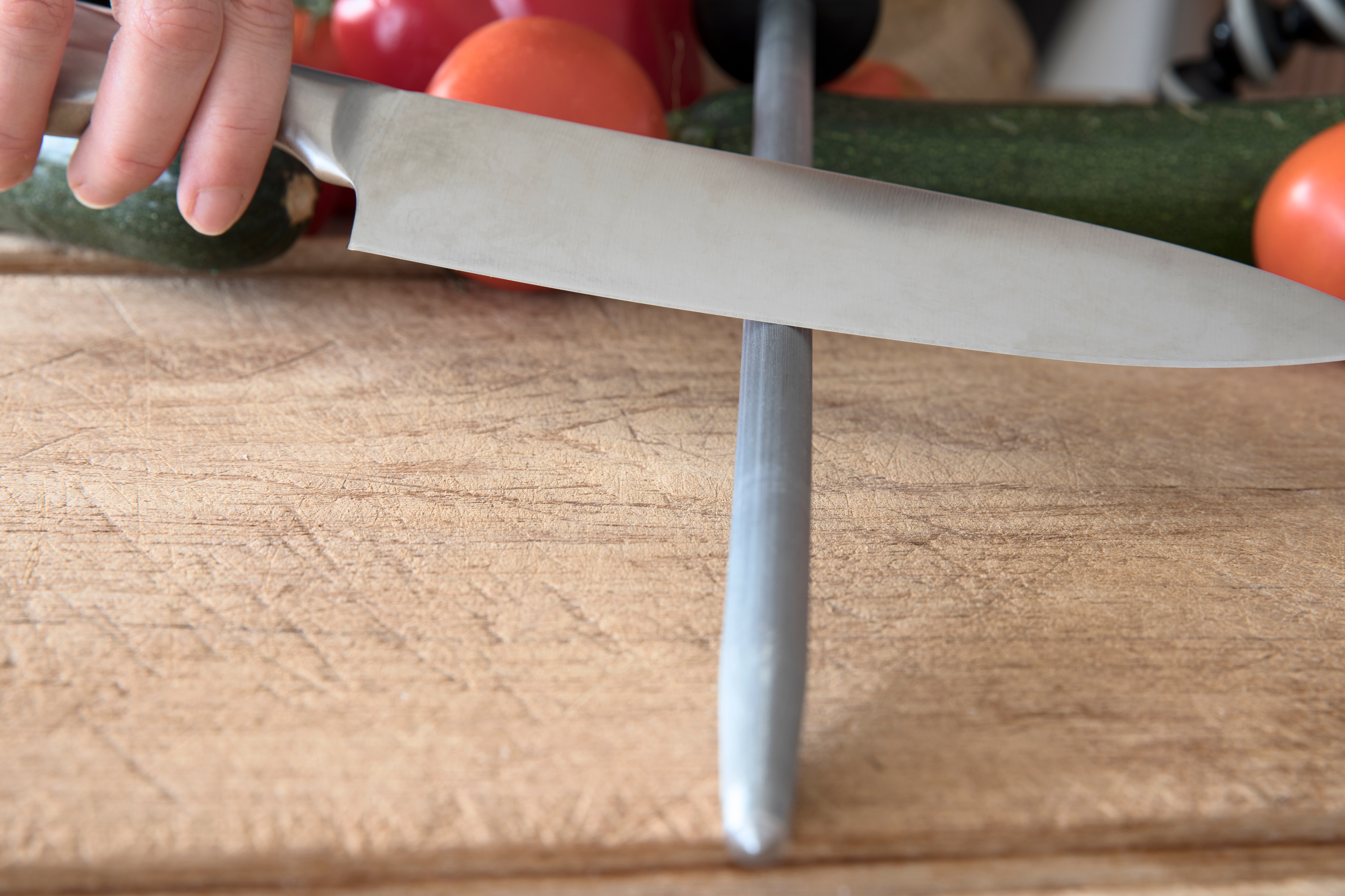 A honing rod doesn’t actually sharpen — it realigns a slightly bent edge. It removes almost no metal, so you can use it often.